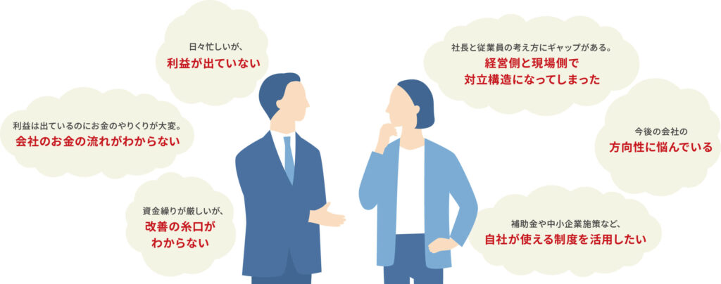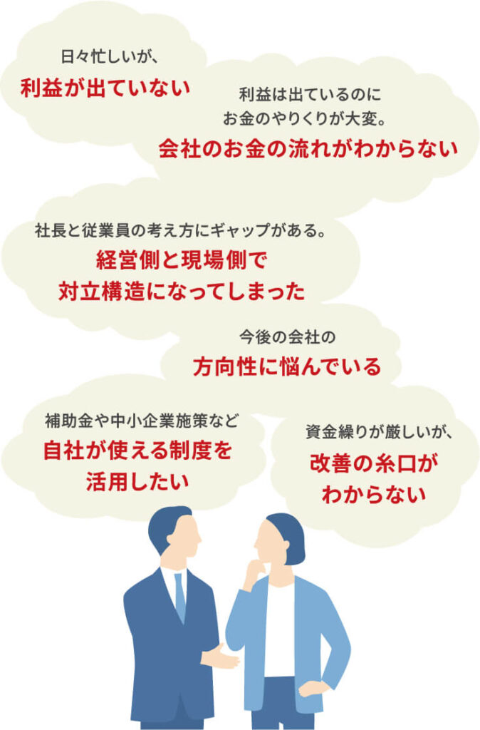 経営でお悩み・お困りの方はお気軽にご相談ください。